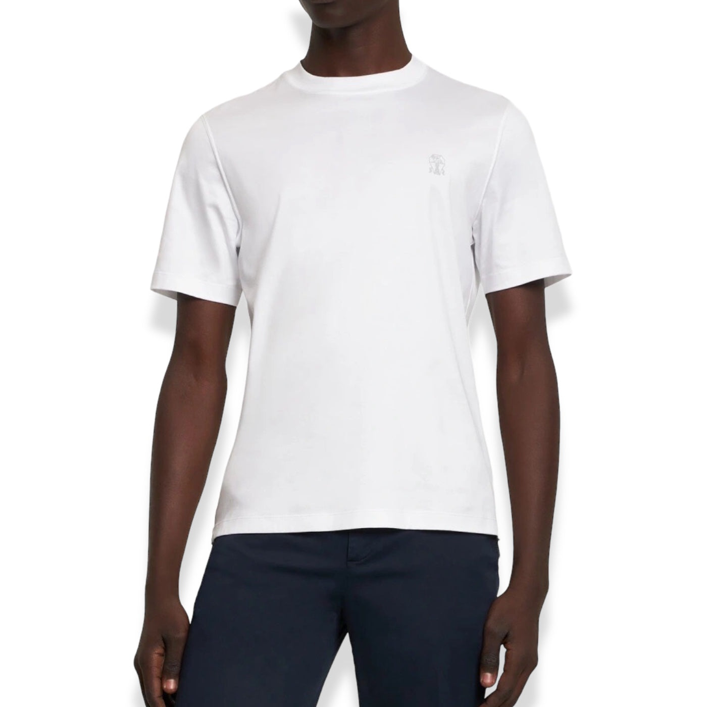 The excellence of Brunello Cucinelli materials enriches this classic crew-neck T-shirt. Soft cotton jersey enhances the season's colors with a casual, versatile feel, while the logo printed on the chest completes the style with an iconic element. The silhouette features regular proportions.