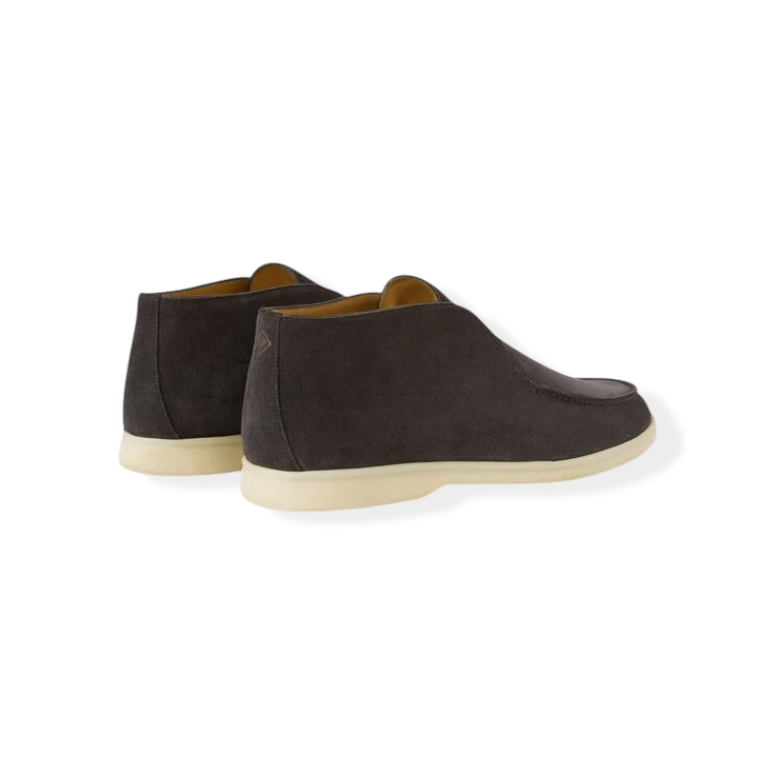 Classic suede mid top loafers with a water-repellent, stain-resistant treatment. Largely crafted by hand, this soft, lightweight style provides maximum comfort, thanks to its well-designed construction and rubber soles. Dedicated space on the heels where you can write your name — a popular tradition among sailing enthusiasts. Perfect for summers spent sailing or at the beach. Style your Loro Piana with one of their baby cashmere t-shirts or wish polos.