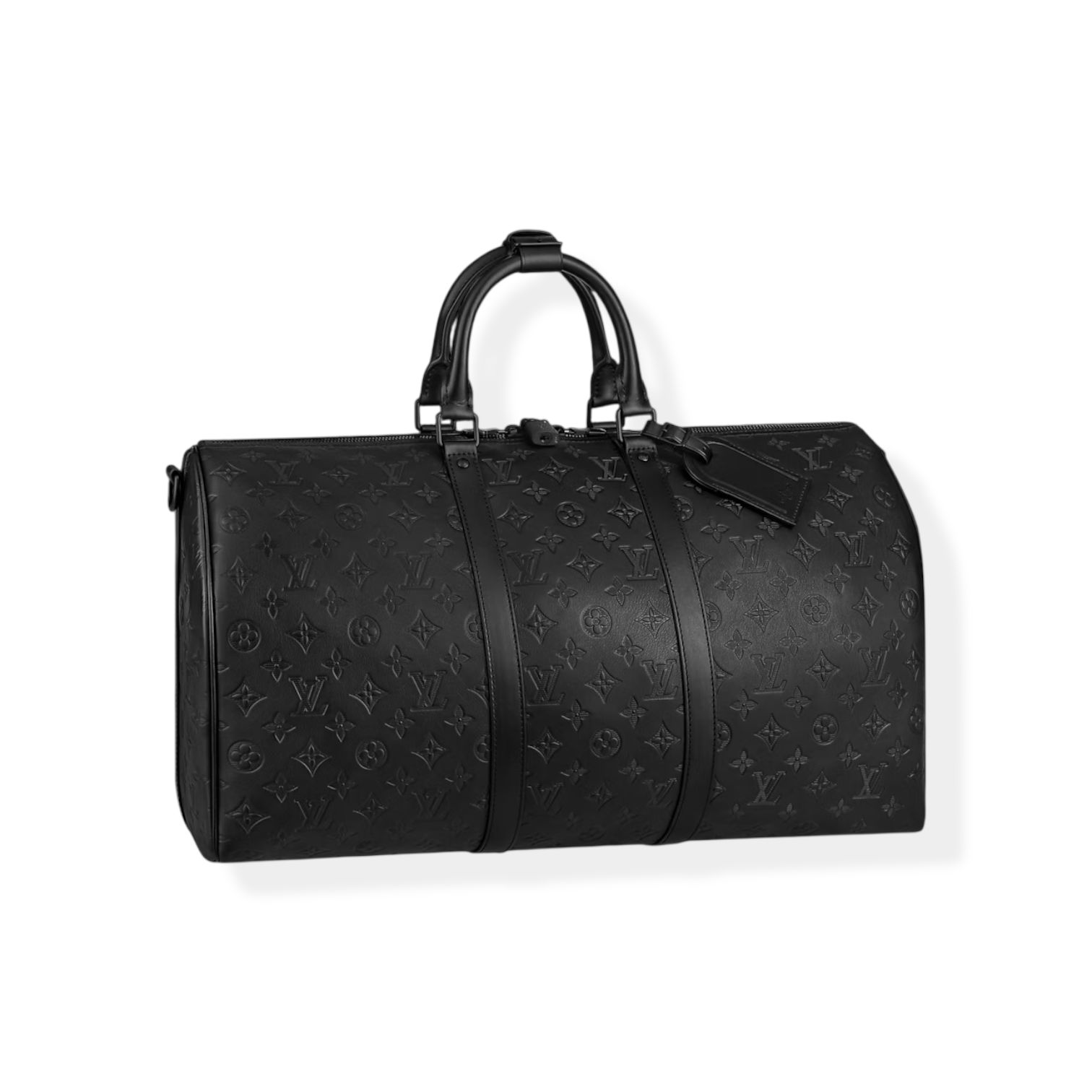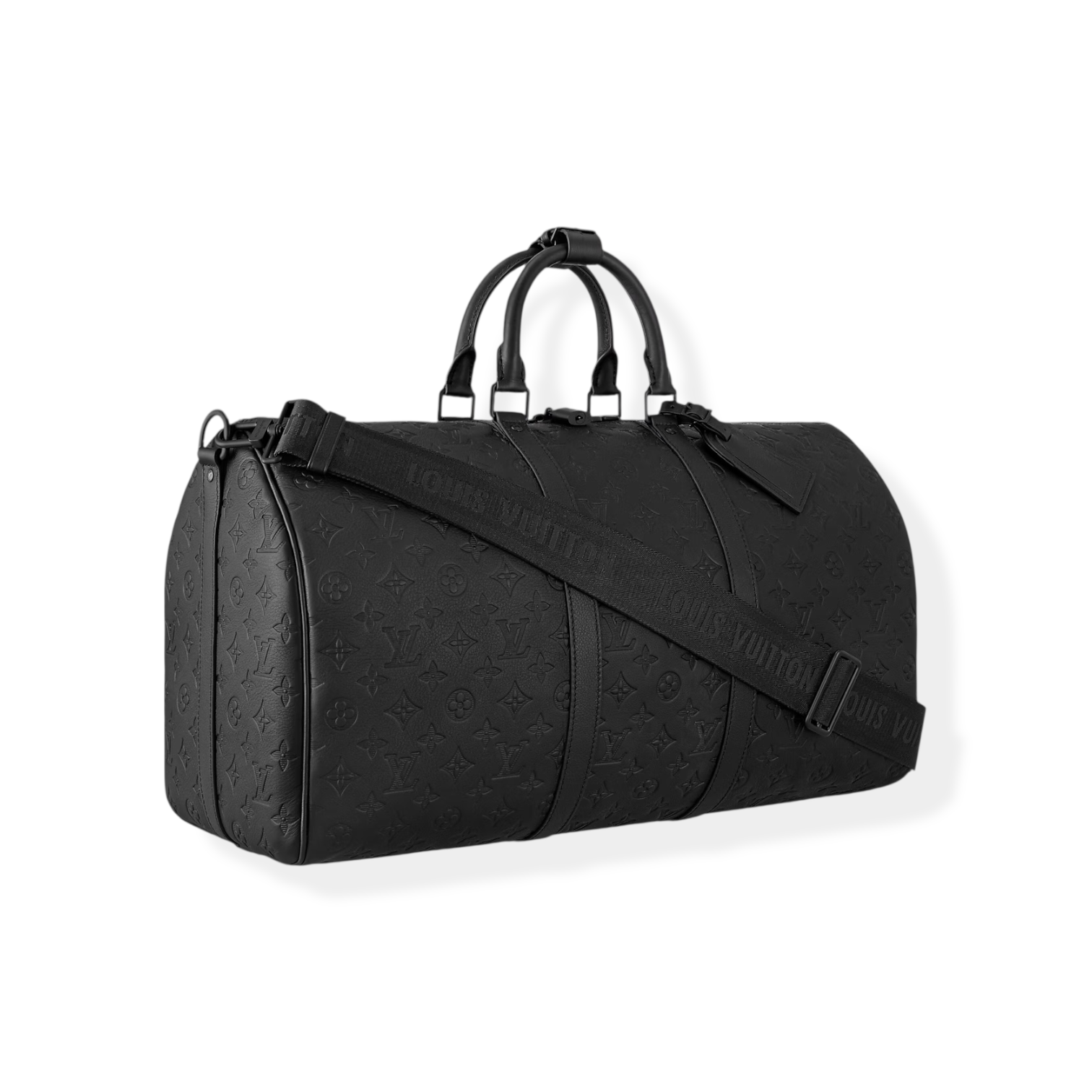 A Louis Vuitton icon, the Keepall Bandoulière 50 is revisited in Monogram Shadow leather, embossed all over with the Monogram pattern. The minimalist design is complemented by matte black hardware. Launched in the 1930s, the Keepall was the original soft travel bag and remains as elegant as ever, with the cabin size ideal for short trips.