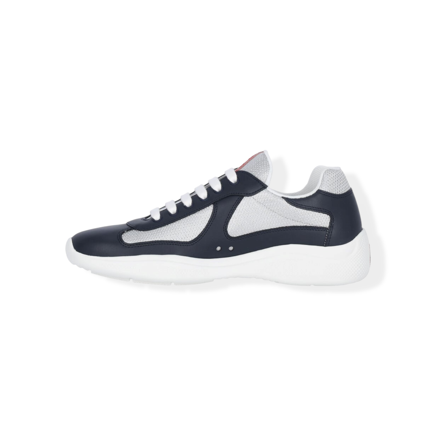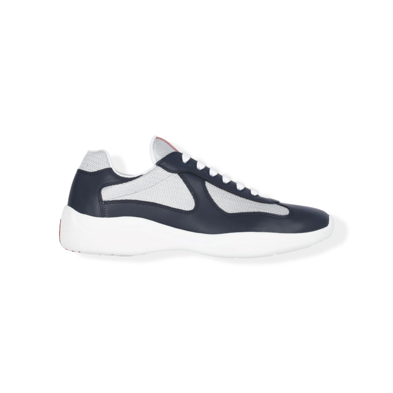 The America's Cup sneaker, which is part of the Prada identity, is reinvented with new materials and colors that instill it with a new contemporary spirit. Originally designed in the '90s for the Luna Rossa crew, the laced shoe inspired by the sailing world is now presented in a combination of colored rubber and bike fabric. The Prada Linea Rossa logo emphasizes the timeless attitude of this style.